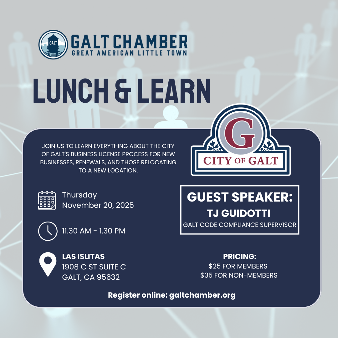 Join us to learn everything about the City of Galt's business license process for new businesses, renewals, and those relocating to a new location.Images
